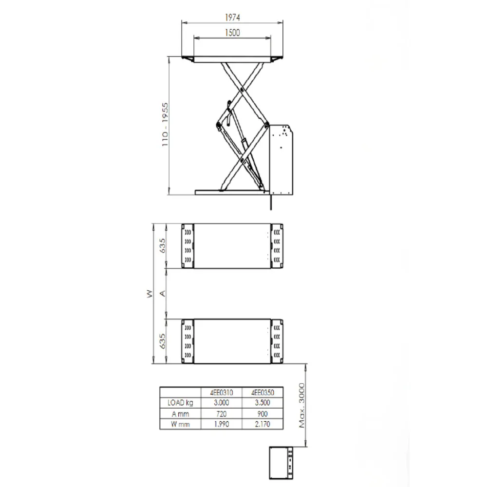 Velyen Saxlyft 4EE0350 är en robust och effektiv fordonslyft i saxdesign, utvecklad för verkstäder och serviceanläggningar som kräver säker, stabil och lättåtkomlig lyftkapacitet. Med en bredare plattform än modeller 4EE0310 klarar det större fordonet och ger ökad flexibilitet i det dagliga arbetet.