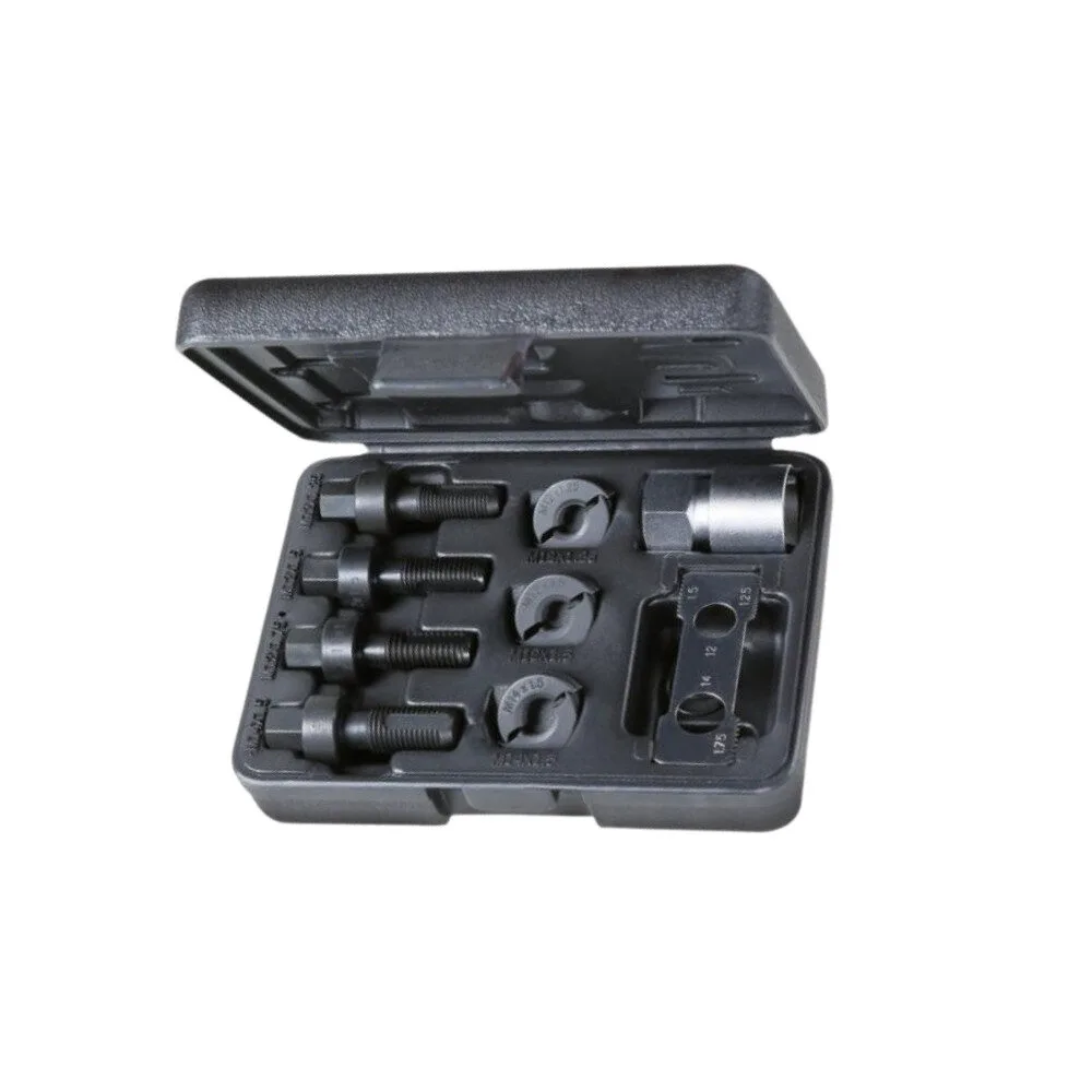 Praktisk och komplett sats från Beta för att räta upp och reparera både invändiga och utvändiga gängor, t.ex. hjulnav och hjulpinnbultar . Kitets innehåller gängtappar och delbara gängsnitt gör det enkelt att återställa original gängan och korrekt passning vid återmontering