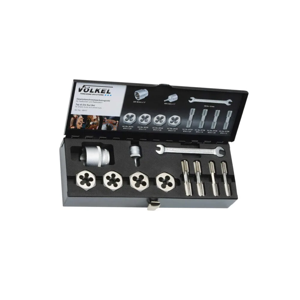 För rengöring och reparation av skadade invändiga och utvändiga gängor på hjulbultar och hjulmuttrar på bilar/släpvagnar