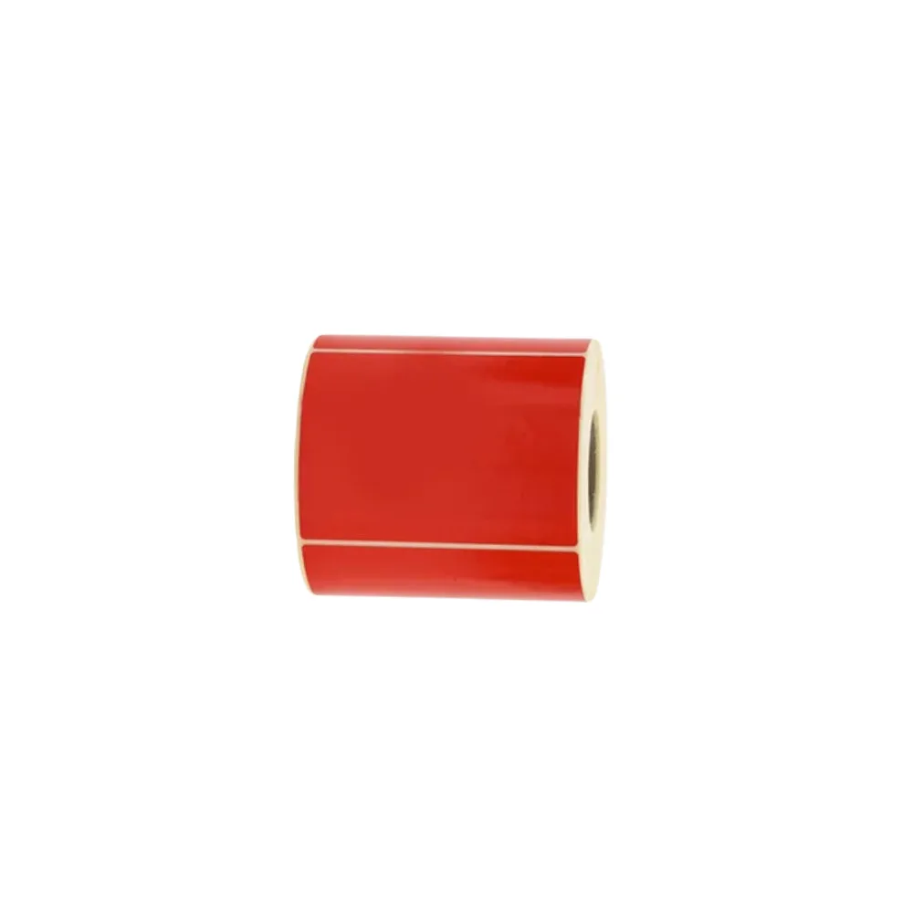 Röda däcketikett utan tryck med specialklister för bra grepp på våta däck och folierad baksida .