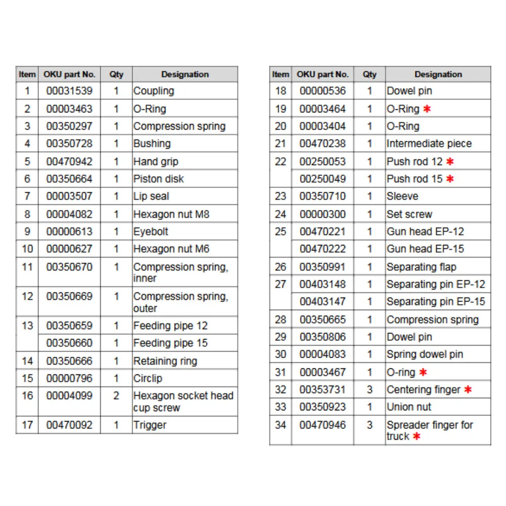 Reservdelar till dubbpistoler OKU EP-12 och EP-15