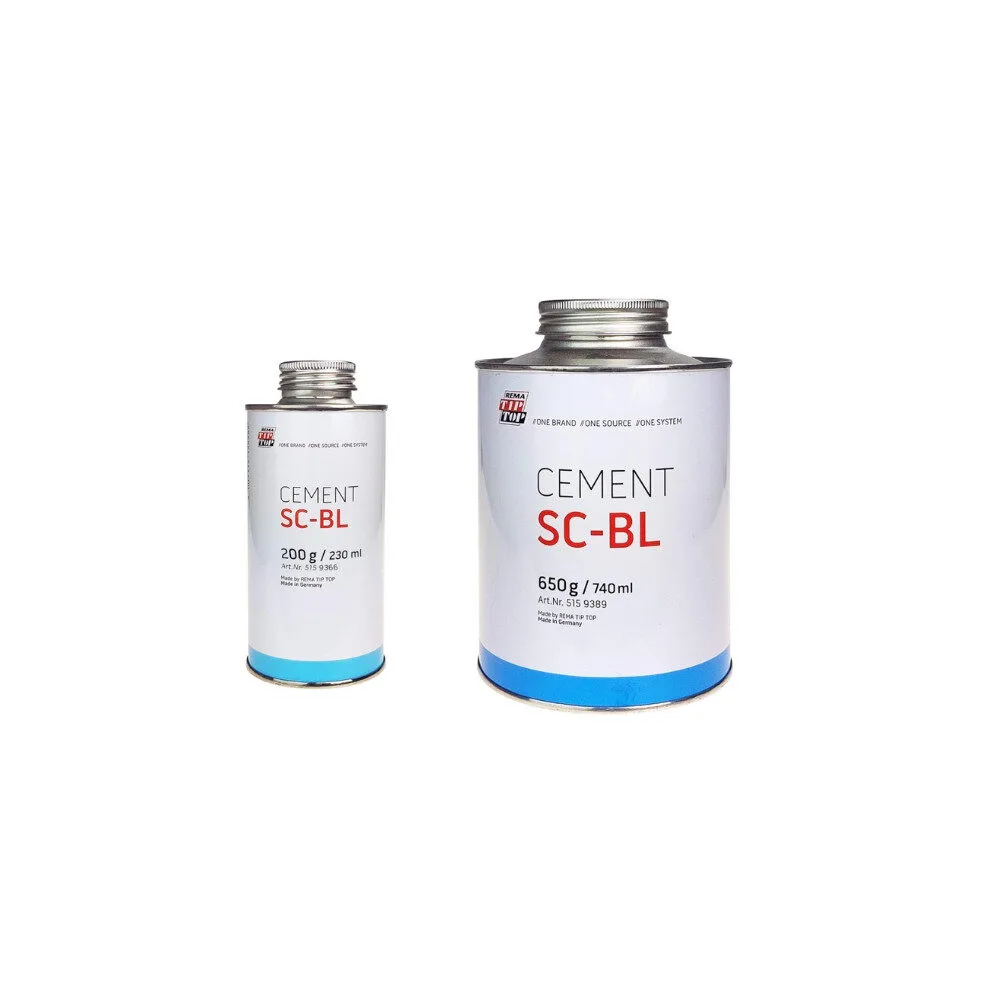 CEMENT SC-BL är en effektiv cement för vulkanisering med REMA-lappar som RAD, PN, UP, MINICOMBI och SEALASTIC. Utan CHC eller aromatiska föreningar, och fungerar från 18 °C upp till varm vulkanisering vid 150 °C. Perfekt för professionella däckreparationer i verkstadsmiljö.