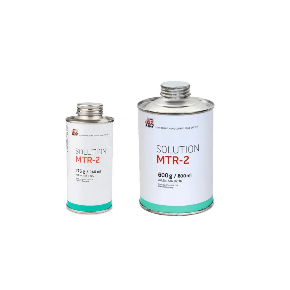 Solution MTR-2 från Rema Tip Top är en högkvalitativ gummilim avsett för varm vulkanisering av däck. Det används för att effektivt binda samman gummimaterial och reparationsslappar, vilket säkerställer en hållbar och säker reparation.