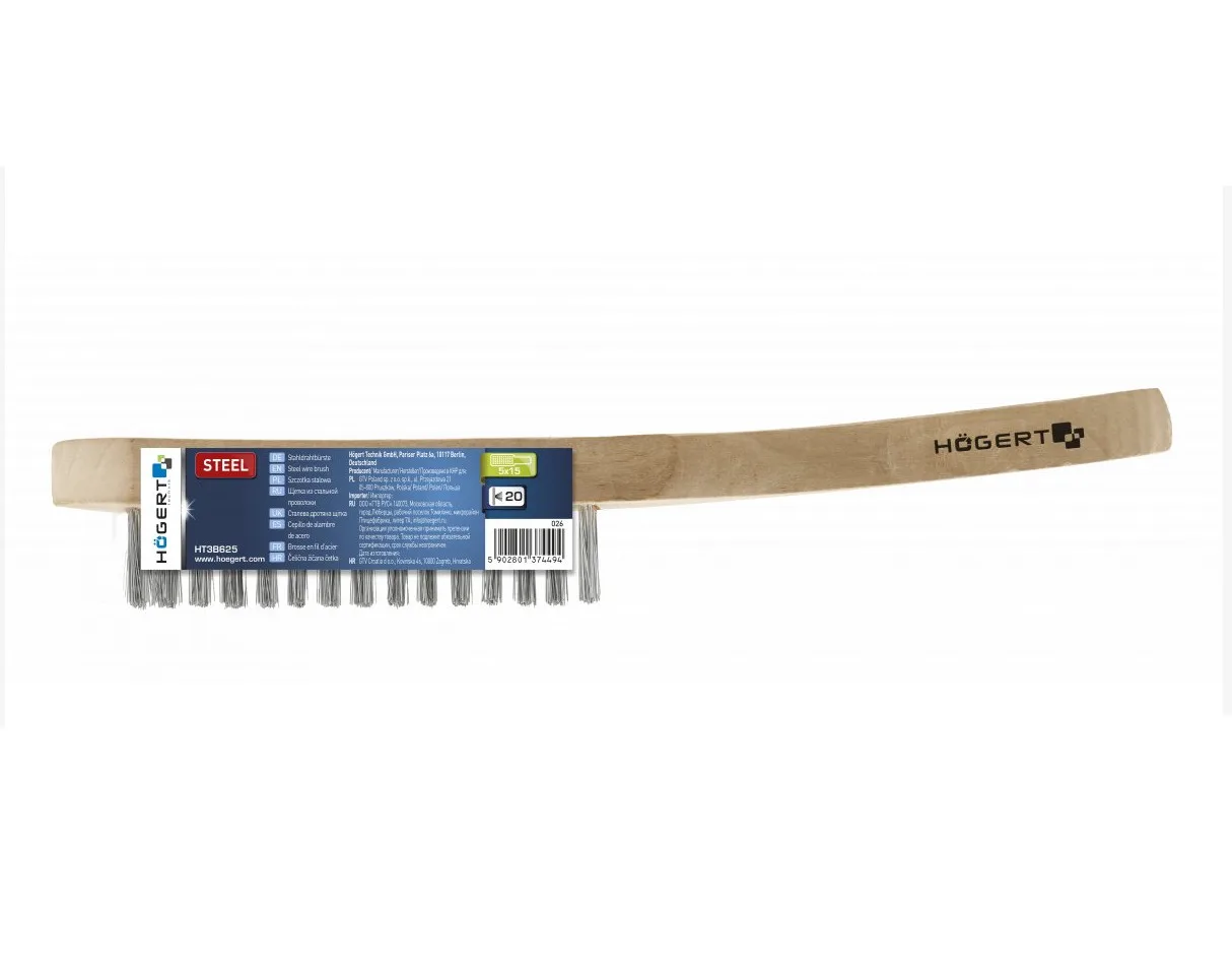 Denna robusta stålborste från Hoegert är ett klassiskt och pålitligt verktyg för tung rengöring i verkstad och industri. Den är konstruerad för att effektivt ta bort rost, färg, korrosion och andra envisa beläggningar från metalliska ytor.