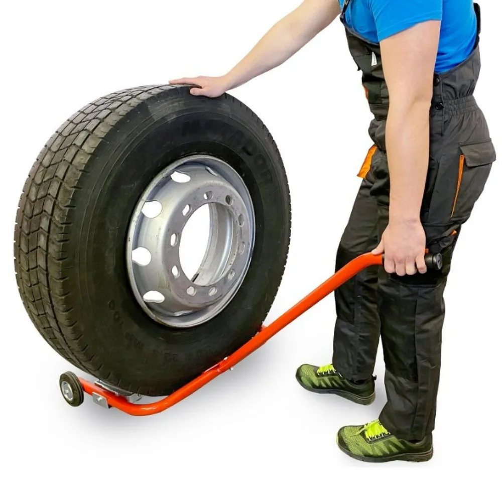 Praktisk hjultransportvagn för verkstad som gör det enkelt att hantera tunga lastbilshjul. Låg och stabil konstruktion som låter dig rulla in och ut hjulen från lastbilen istället för att lyfta. Minskar tunga lyft och sparar tid i det dagliga arbetet.